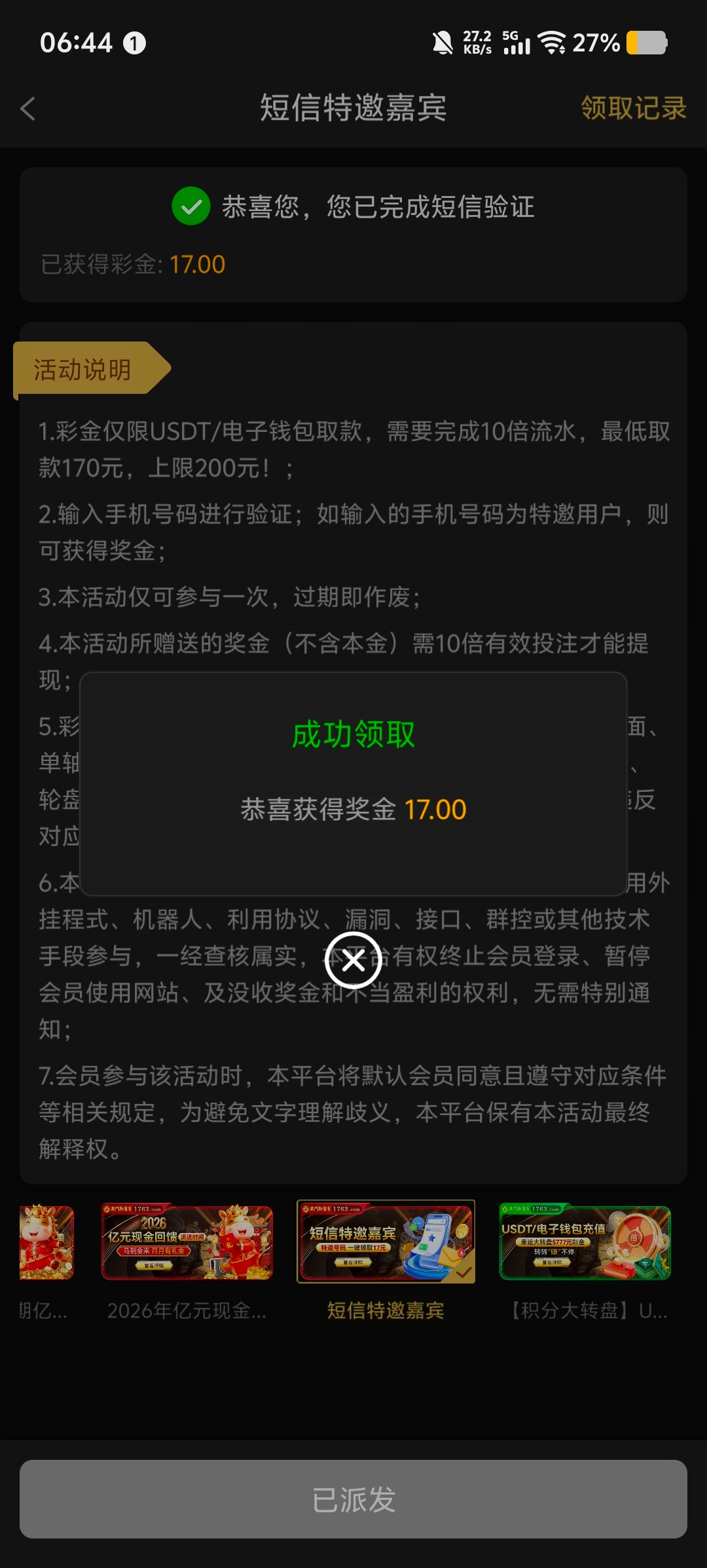 回馈彩金